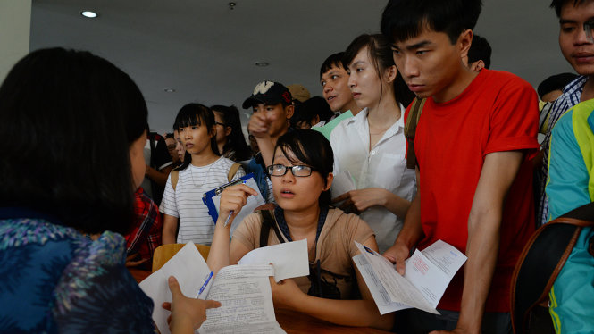 Thí sinh làm thủ tục dự thi tại cụm thi Trường ĐH Sư phạm kỹ thuật TP.HCM -