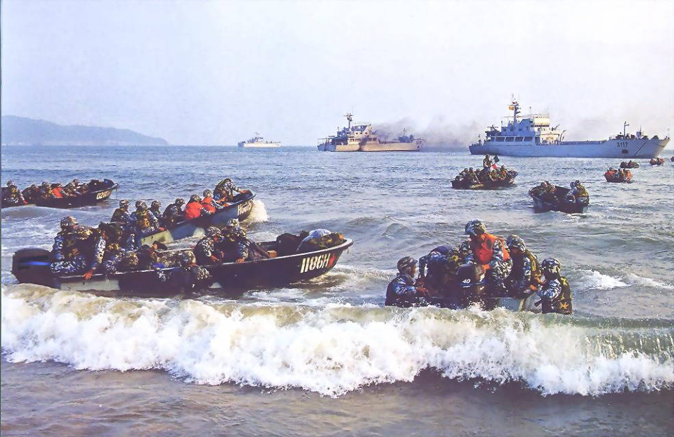 Hải quân TQ thường xuyên tổ chức các cuộc diễn tập bổ bộ đánh đảo, răn đe các nuớc nhỏ trong khu vực.