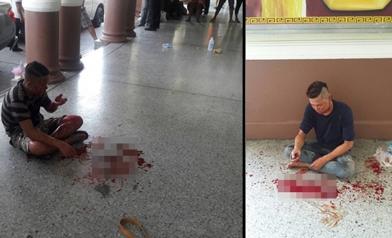 Hình ảnh tại hiện trường cho thấy 2 người đàn ông bị thương.