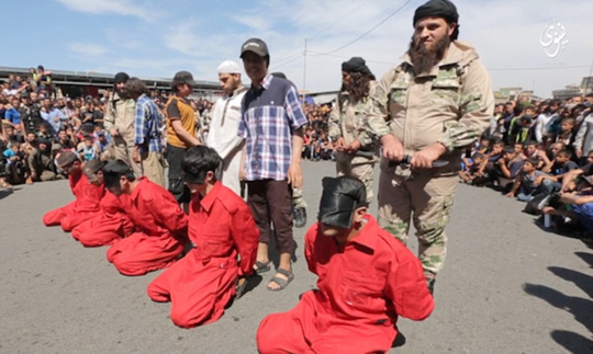 Trang Daily Mail ngày 12-5 đưa tin 5 tù nhân – đều bị kết tội bội giáo – bị tổ chức Nhà nước Hồi giáo (IS) tự xưng dẫn vào giữa đám đông dân chúng tại TP Nineveh – Iraq. Họ đều mặc áo tù nhân và bị bịt mắt trước khi quỳ xuống nền đất.