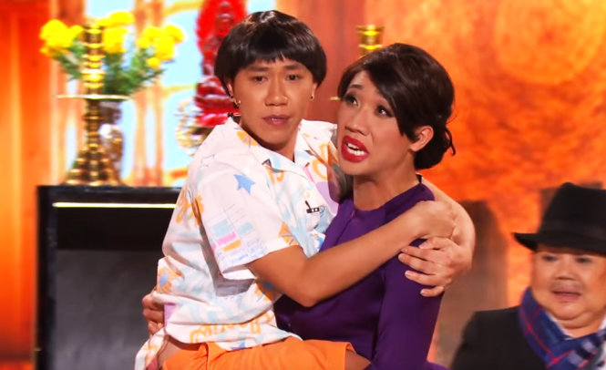 Anh Đức và Trấn Thành trong vở hài kịch Tô Ánh Nguyệt Remix - Ảnh cắt từ clip