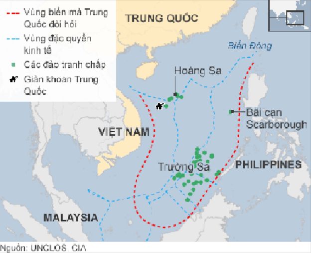 Philippines đơn phương kiện Trung Quốc lên toà trọng tài,Trung Quốc cáo buộc Philippines làm như vậy là vi phạm luật quốc tế.Trung Quốc còn tự tin nói rằng có rất nhiều các quốc gia ủng hộ Trung quốc trên biển Đông.Cụ thể phải có hơn 40 quốc gia.