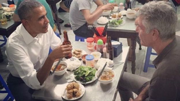 TT Obama ghé ăn bún chả một quán bình dân ở Hà nội cùng với một vị đầu bếp nổi tiếng Anthony Bourdain.Nhiều người dân đều ngưỡng mộ và khen ngợi TT Obama về cách thưởng thức đồ ăn và sự thân thiện gần gũi của ông....Nhưng lại có rất nhiều điều lạ trong những tấm ảnh được chụp.