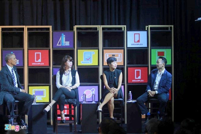 17h20 ngày 24/5, Tổng thống Barack Obama có mặt tại tầng 14 Dreamplex, nơi gần 100 đại diện startup Việt chờ đợi cuộc giao lưu với người đứng đầu Nhà Trắng. Ông Obama bước vào khán phòng trong tiếng vỗ tay của các doanh nhân trẻ.