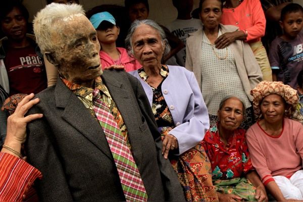 Những người thân đã khuất sẽ mãi là một phần của gia đình cho đến khi có đủ tiền để thực hiện cả một đám tang đình đám. Ngoài ra, những người dân xứ Tana Toraja còn có hủ tục quật mả, trong đó những phần còn lại của thi thể sẽ được quật lên, lau rửa, cho ăn mặc đàng hoàng, và thậm chí được đi lại xung quanh làng.