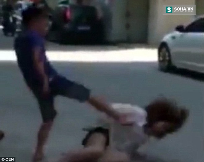 Người chồng vũ phu đã "thượng cẳng tay, hạ cẳng chân" với vợ ngay giữa vỉa hè đông đúc mặc con gái sợ hãi khóc lóc và sự can thiệp của người dân qua đường.