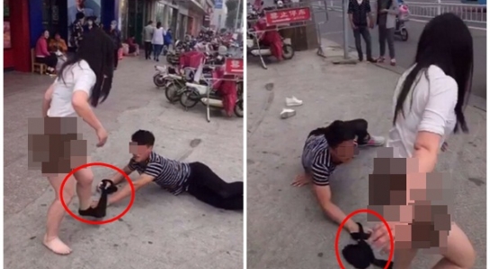 Mới đây nhất, những hình ảnh một cô gái ở Giang Tô, Trung Quốc bị bạn trai ôm chân, lột quần tất ngay giữa đường cũng nhận được nhiều sự quan tâm của cộng đồng mạng.