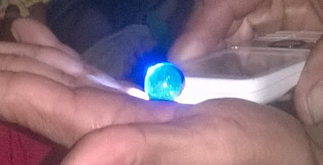 Sau hồi thuyết phục, anh Hiếu mới đồng ý cho chúng tôi vài tấm ảnh mà anh đã chụp viên ngọc bằng cách gửi qua bluetooth. Trong ảnh, viên ngọc lấp lánh trông vô cùng bắt mắt.