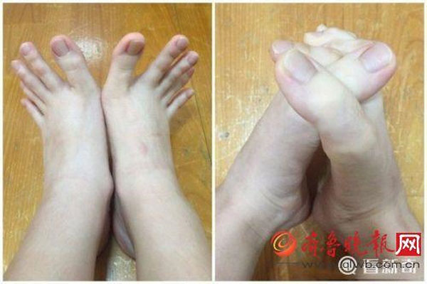 Dù chỉ cao 1m51 nhưng nữ sinh người Trung Quốc này lại có ngón chân dài tới 5cm, nhìn như một bàn tay. Đặc biệt, các ngón chân đều thẳng, thon và rất đẹp theo kiểu bàn chân Hy Lạp. Tuy nhiên, cô gái này không hề cảm thấy thích thú với phần cơ thể đặc biệt này.