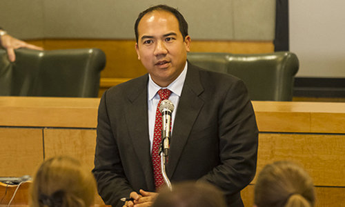 Giáo sư Julian Ku phát biểu tại một hội thảo quốc tế. Ảnh: Lawnews