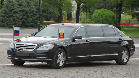 Mỗi khi Tổng thống Nga công du nước ngoài, đoàn xe hộ tống của ông sẽ do các máy bay vận tải của Rossiya Airlines đảm nhận việc vận chuyển. Trong chuyến đi Vienna (Áo) tháng 6/2014, đoàn xe tháp tùng Tổng thống Putin có tới 27 ôtô và 10 xe máy.