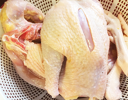 -Cho xương gà vào nước sôi trụng sơ, rửa sạch bằng lại nước lạnh.