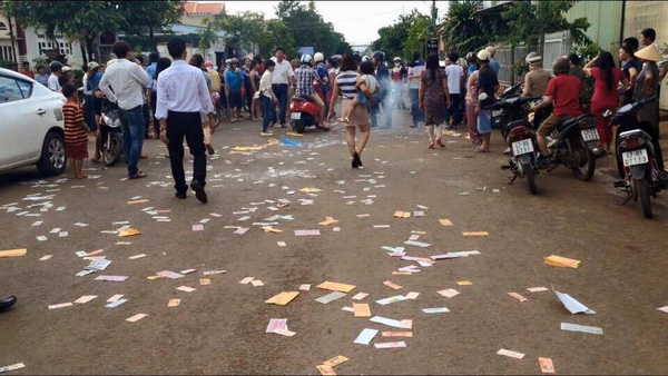 Trong ngày vui của chồng cũ, người vợ và con trai đã có màn chúc mừng cực bá đạo: đốt nhang, bật nhạc đám cưới và rải tiền vàng khắp đường phố. Những hình ảnh này được đăng lên mạng xã hội và nhận được những ý kiến trái chiều.