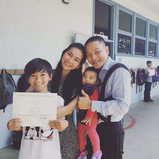 Nàng Út Ráng cho biết, vợ chồng cô đều bất ngờ về kết quả học tập của Sonic bởi việc học ở Mỹ khác hoàn toàn với Việt Nam. Cô cười nói: "Có lẽ Sonic hiểu sự hy sinh của vợ chồng tôi để bé có môi trường tốt nên đã rất nỗ lực làm cho bố mẹ vui lòng. Hơn nữa, tình yêu của 4 thành viên trong tổ ấm cũng khiến Sonic hạnh phúc và có thêm động lực".