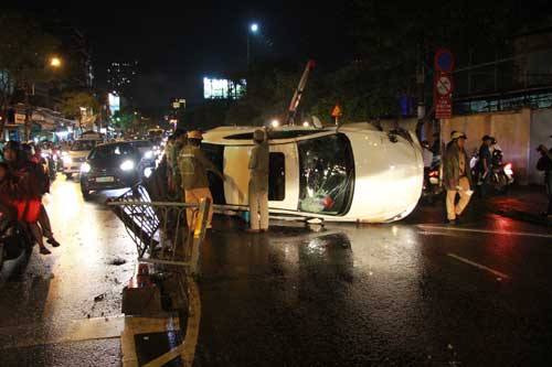 Vào 19h, ngày hôm qua, 20-6, chiếc xe ô tô mang BKS: 51F-310.65 do người phụ nữ điều khiển đang lưu thông trên đường Xóm Chiếu, đã mất lái tông vào dải phân cách, khiến ô tô lật úp. Rất may mắn không có ai bị thương trong vụ tai nạn này.