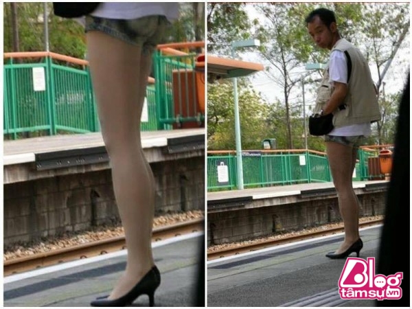 Anh chàng này đang chờ xe bus trên đường đi làm thì bất giác bắt gặp một người đàn ông khác cũng đứng đợi. Điều đặc biệt là anh chàng này có một đôi chân dài không thể dài hơn và đi guốc như phụ nữ . Quá choáng váng với điều đó, anh chàng này đã chụp lại bức hình và đăng tải lên một diễn đàn trên Weibo.