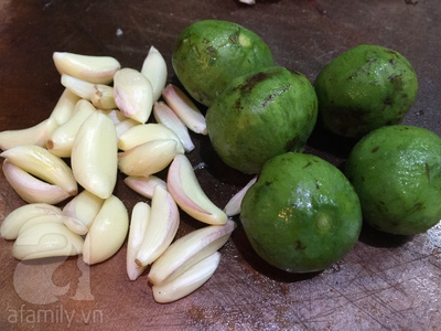 Tỏi bóc vỏ để nguyên tép. Sấu cạo sạch vỏ.