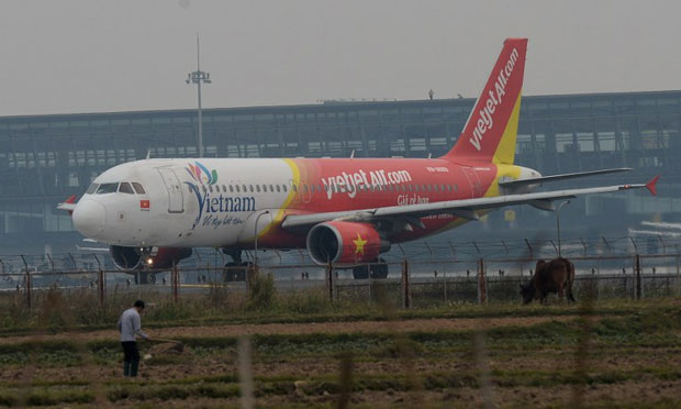 Máy bay hãng VietJet Air chuẩn bị cất cánh ở sân bay quốc tế Nội Bài của Hà Nội.