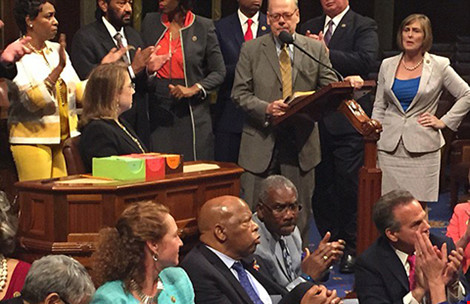 Hơn 100 nghị sĩ Đảng Dân chủ đã tham gia một cuộc biểu tình ngồi, kéo dài 24 tiếng đồng hồ. Mục đích của cuộc biểu tình này là phản đối sự im lặng của đảng Cộng hòa trước các vụ sử dụng súng gây bạo lực.