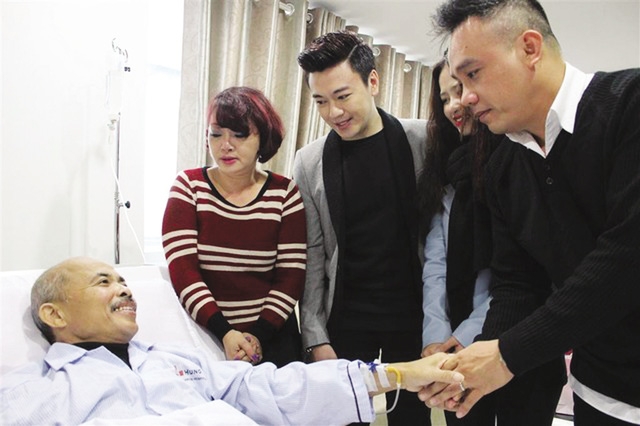 Các đồng nghiệp thăm hỏi nghệ sĩ Hán Văn Tình. Ảnh: TL