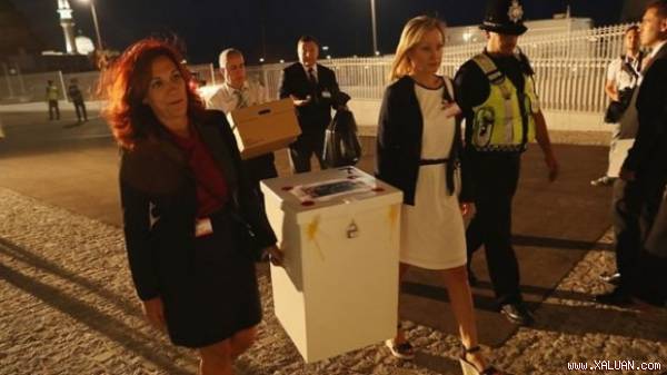 Hòm phiếu được chuyển đi kiểm tra sau khi bầu cử xong tại Gibraltar. Ảnh: BBC