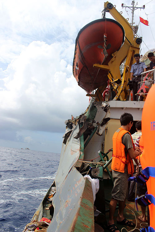 Trung cộng dở thói ngang ngược,lộng hành bao vây tàu VC trên biển Đông.Dùng tàu đâm những cú đâm tàn độc.Khiến ngư dân VC bị thương và tàu hư hỏng nặng.