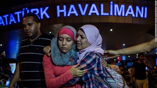 Du khách hoảng sợ rời khỏi sân bay Ataturk. Ảnh: CNN