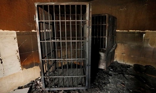 Một góc nhà tù của IS ở Fallujah bị thiêu cháy. Ảnh: Reuters.