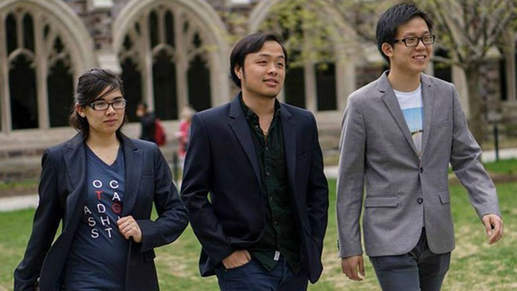 Châu Thanh Vũ (giữa) trong khuôn viên Trường ĐH Harvard