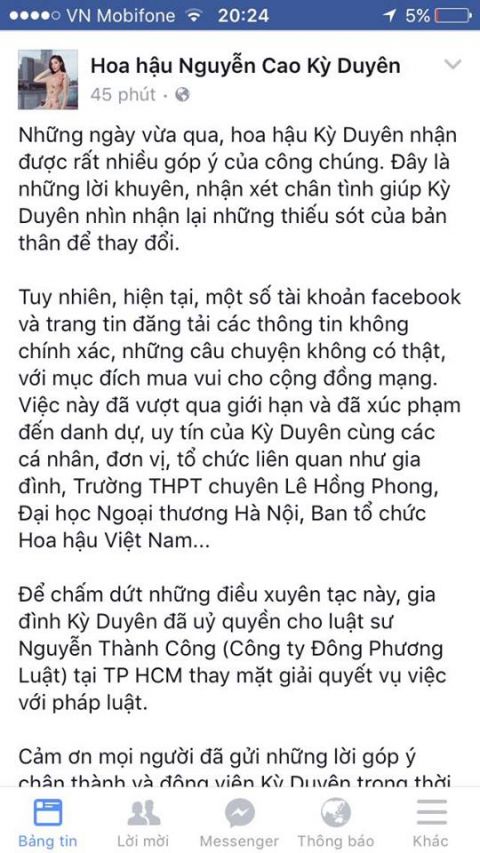 HH Kỳ Duyên quyết đ̣i công luận trả lại ”sự trong sáng” cho cô bằng cách kiện ra ṭa