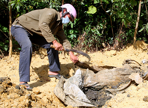 Cơ quan chức năng phát hiện khoảng 100 tấn chất thải của Formosa chôn lấp trái phép. Ảnh: Tân Kỳ.
