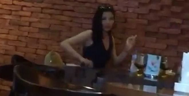 Cô gái hút thuốc lá tại một nhà hàng mà không bị bất cứ ai cản trở, điều đó có nghĩa được chủ nhân nơi đó cho phép hút thuốc.