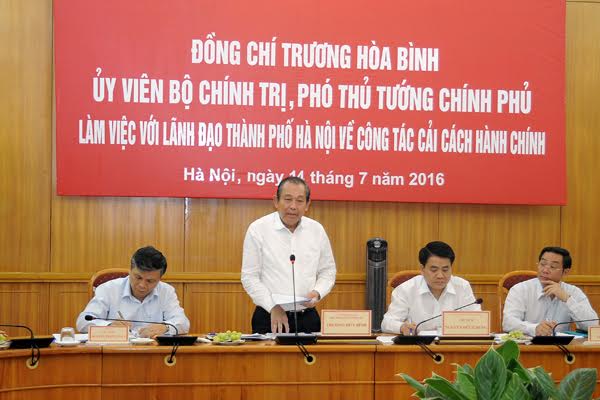 Chiều nay, đoàn kiểm tra công tác cải cách hành chính Chính phủ do Phó Thủ tướng Trương Hòa Bình làm trưởng đoàn đã có buổi làm việc với lãnh đạo TP Hà Nội.