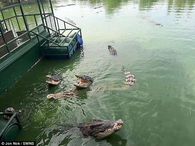 Jon Nok, một tài xế taxi đi ngang qua, đã chụp lại các bức ảnh về lũ cá sấu háu đói đang vây quanh nhóm du khách mạo hiểm. "Tôi đã chạy taxi hơn 20 năm qua và chưa từng chứng kiến điều gì tương tự", Jon (40 tuổi) nói.