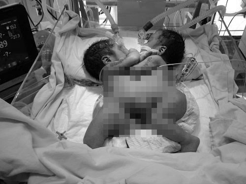 Hai bé song sinh dính liền đã tử vong sau 7 ngày điều trị tại BV Việt Đức. Ảnh: HQ.