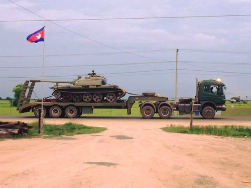 Theo Cambodia Daily, người dùng mạng ở Campuchia chia sẻ các hình ảnh cho thấy nhiều xe tăng được chuyển từ một căn cứ quân sự gần ngôi đền Preah Vihear ở biên giới với Thái Lan lên đường cao tốc, về hướng Phnom Penh hôm 18/7.