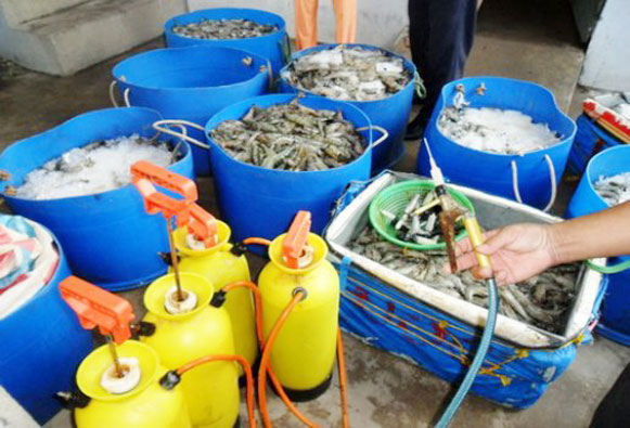 “Tình trạng bơm, chích vào tôm ở nhiều dạng (agar – rau câu, chế phẩm dạng bột CMC, rong biến nấu chín được xay nhuyễn, nước…) để tăng trọng. Vụ việc sẽ xảy ra ngày càng nhiều khi vào thời điểm nguồn nguyên liệu khan hiếm” - ông Châu Công Bằng – Phó Giám đốc Sở NNPTNT tỉnh Cà Mau nói.
