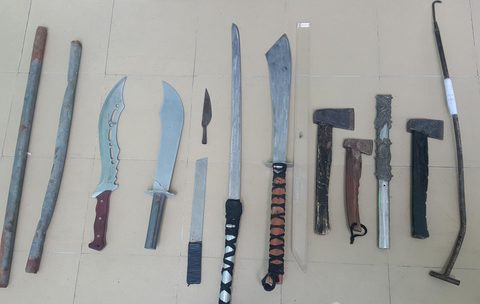 Mã tấu 2 nhóm dùng để truy sát bị cảnh sát thu giữ. Ảnh: Công an cung cấp.