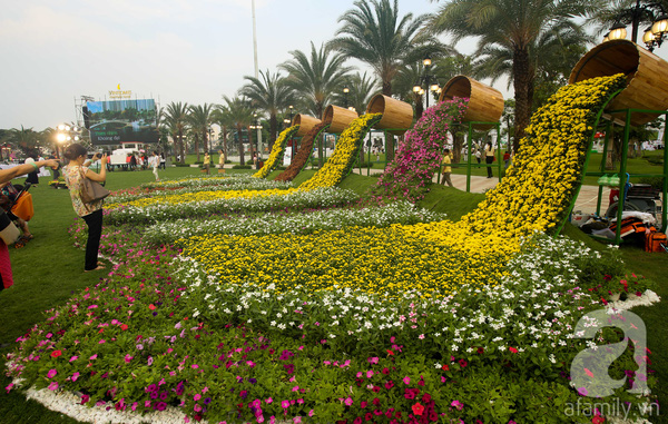 Những tiểu cảnh rực rỡ sắc hoa phủ khắp công viên.
