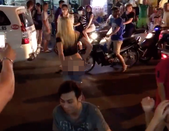 Chẳng rõ đôi trai gái này cao hứng đến đâu mà họ lại quyết định kéo quần rồi quay về phía rất nhiều người đang có mặt trên phố Bùi Viện.