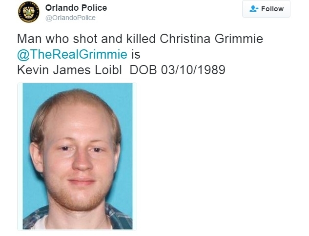 Tên sát nhân, sau này được xác nhận danh tính là Kevin James Loibl, 27 tuổi, đến từ thành phố St. Petersburg, cách 160 km về phía tây thành phố Orlando. Kevin mang theo 2 khẩu súng, tiến đến nơi Grimmie đang kư tặng người hâm mộ và nổ súng bắn chết nữ ca sĩ 22 tuổi này. Tay súng đă tự sát sau khi bị anh trai của Grimmie quật ngă.