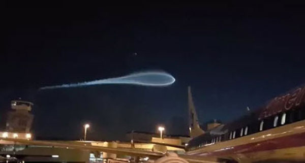 “Nhìn thứ đó kìa, nó sắp đâm vào chiếc máy bay!” – một người đàn ông nói trong khi đang quay phim. Sau đó, người này thay đổi vị trí để cho thấy vật thể lạ trên đang di chuyển trên bầu trời đêm.
