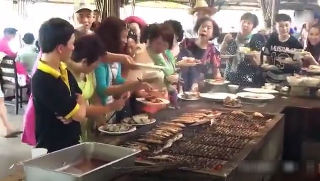 Cách đây không lâu, báo chí thế giới và người dân Việt Nam cũng từng chứng kiến một cảnh tưởng kinh hoàng khi người dân Trung Quốc tranh giành đồ ăn tại những bữa buffet. Thức ăn vừa được nhân viên phục vụ mang ra, những vị khách nhanh chóng xong vào, gắp lịa lịa thậm chí lấy cả tay bốc đồ ăn vào đĩa của mình. Tay vừa lấy thức ăn tay vừa cản để người khác không lấy mất phần, miệng vẫn liên tục nói tạo thành một không gian hỗn loạn như chiến trường.