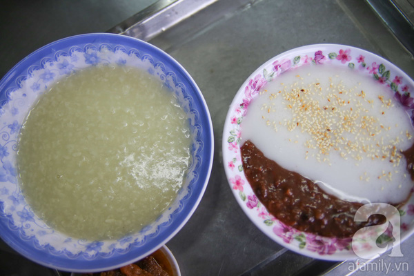 Điểm đặc trưng của cháo trắng ở đây là thơm mùi lá dứa, hạt gạo được nấu khéo để nở bung như những bông hoa trắng phau mịn màng dưới mặt nước xâm xấp vừa đủ, không quá đặc hay lỏng. Ngoài cháo trắng, quán còn có cháo đậu đen, đậu đỏ để tăng thêm lựa chọn cho thực khách. Và khi bạn kêu một tô cháo đậu đỏ, người bán sẽ cho thêm nước cốt dừa, rắc chút vừng để làm tăng hương vị thơm ngon của tô cháo. Cháo đậu đỏ dễ ăn, ngọt dịu tuy nhiên ăn nhiều dễ gây ngán vì nước cốt dừa được bỏ khá nhiều.