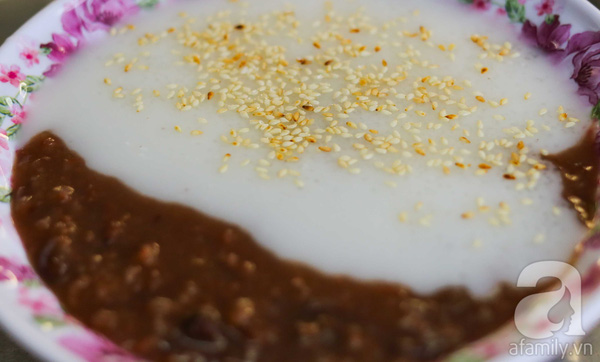 Cháo đậu đỏ được cho thêm nước cốt rừa với vừng rang.