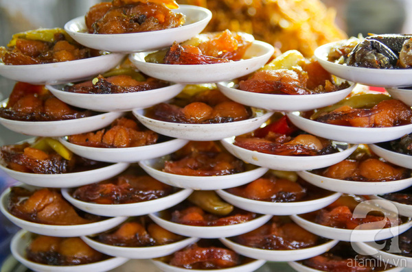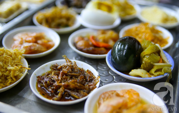 Dưa món hay trứng bắc thảo là phổ biến nhất. Mỗi phần ăn mặn có giá khoảng 10 ngàn/chén.
