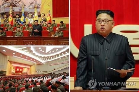 Tại buổi hội nghị gương sáng sĩ quan chỉ huy quân đội và quân nhân, ông Kim Jong-un nhấn mạnh việc tăng cường chuẩn bị chiến đấu. Ảnh: Yonhap