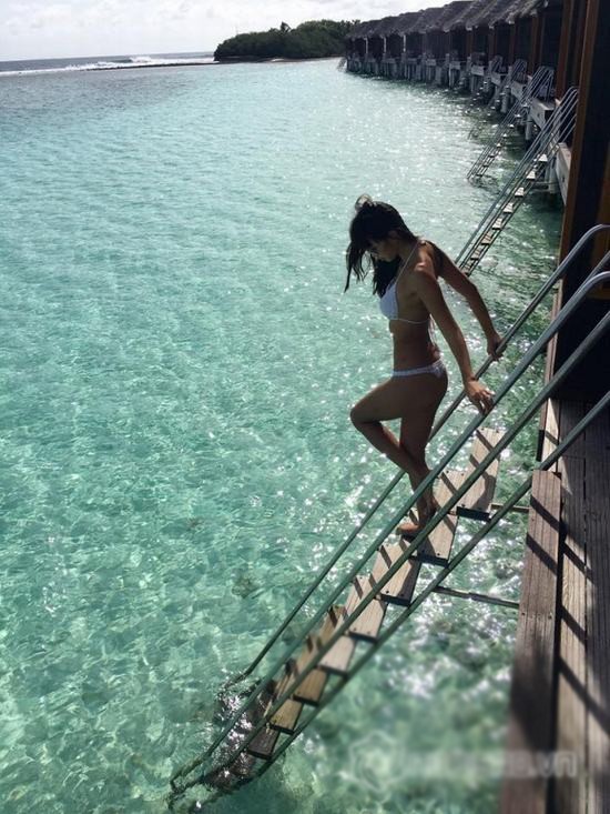 Nóng bỏng với bikini siêu bé, người mẫu Hà Anh hưởng tuần trăng mật ở Maldives.