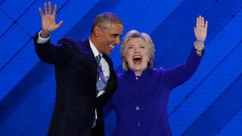 Tổng thống Obama và bà Hillary Clinton tại Đại hội toàn quốc Đảng Dân chủ.
