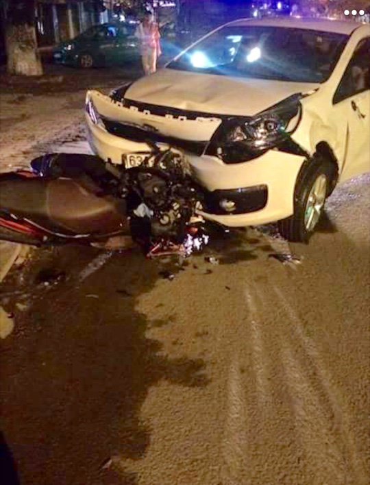 Vụ tai nạn xảy ra giữa ô tô BKS 63A-051.45 và 2 xe gắn máy. Theo một nhân chứng, vào khoảng 2 giờ ngày 7-8, ô tô BKS 63A-051.45 đi từ đường Lê Văn Phẩm quẹo phải ra đường Lý Thường Kiệt nhưng lấn sang trái sát dải phân cách cứng rồi mới quẹo phải, đâm thẳng vào sát lề phải đường Lý Thường Kiệt tông vào 2 xe máy đang đậu; làm 1 thanh niên chết tại chỗ. Sau khi gây tai nạn, 4 người xuống từ xe ô tô đều có mùi rượu.